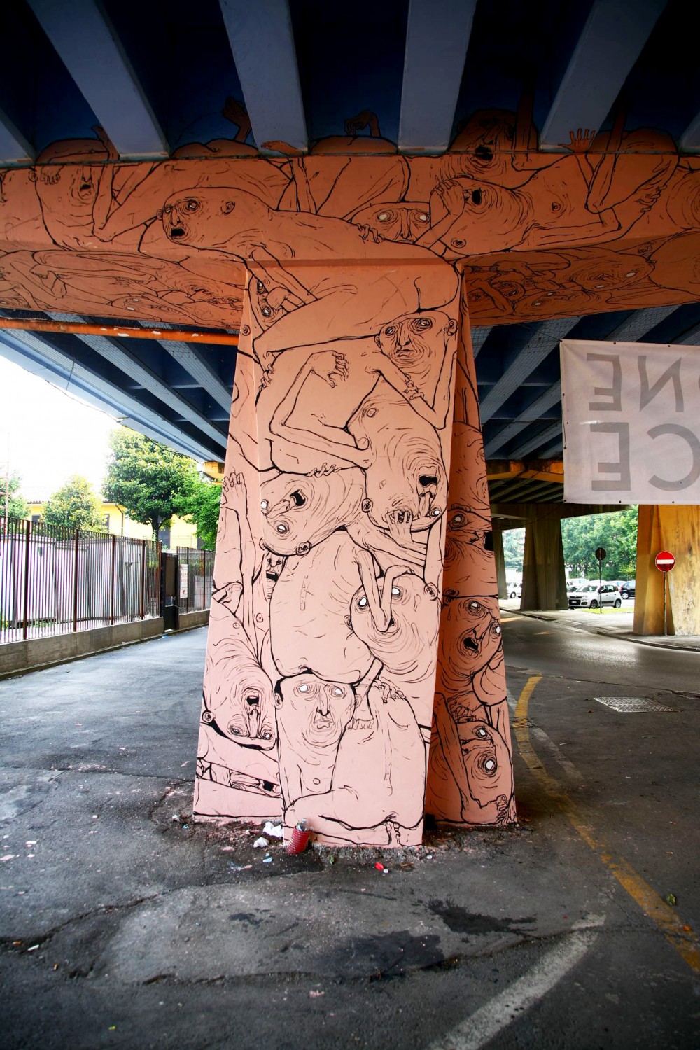 10 street artist per 10 pilastri: 10 artisti venuti da tutta Italia, nonché 10 tra i più interessanti del panorama nazionale di street art, ovvero Nemo’s, Seacreative, Fille Bertha, Collettivo FX + Astro Naut, Giorgio Bartocci, Andrea Casciu, Ale Senso, Geometric Bang, G loois e ilBaro, hanno dipinto 10 pilastri del sottopassaggio di Boccaleone.