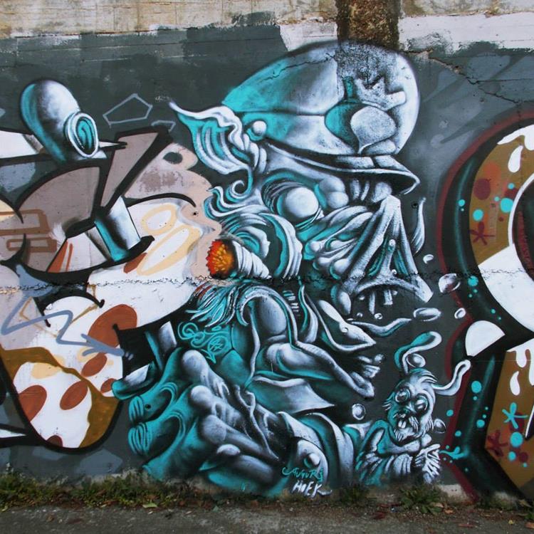 quella che è effettivamente la street art però in linea di massima mi sembra che i graffiti si continuino a fare continuamente e pesantemente basti pensare alle metro di Roma che continuano ad essere fortemente dipinte. I graffiti non sono solo vivi e vegeti ma sono anche attivi. Non ho tantissime persone che mi piacciono dal punto di vista stilistico. Keios e Skeil tra quelli che fanno graffiti a Roma che mi piacciono molto perché hanno dei lettering puliti ben fatti e colorati nonostante se li facciano illegalmente in dei luoghi che sono particolarmente difficili. Anche Tadh di cui mi piacciono i faccioni in giro.