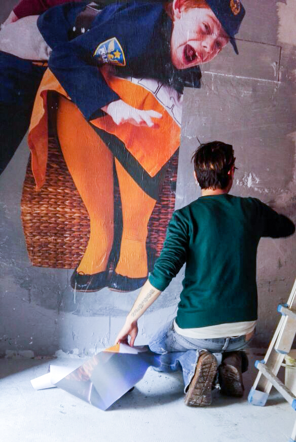 Recentemente, infatti, l’artista ha realizzato una nuova opera nel laboratorio, intitolata “Mommy”, e l’ha poi regalata, per supportare la loro causa. Da febbraio, infatti, il Millepiani è sotto sfratto, una azione che appare immotivata e che giunge dopo 10 anni di intense attività, tra cui seminari, dibattiti, concerti musicali, ma soprattutto 10 anni di battaglie a difesa dei cittadini e dei beni comuni. Gli attivisti del Millepiani hanno però deciso, non solo di impegnarsi ancora di più perché continui ad essere un laboratorio di sperimentazione di altri tipi di socialità e condivisione, tra cui appunto un angolo pittura ma anche altre iniziative quali sala giochi, cineforum e co-working, ma hanno intrapreso anche una campagna di autofinanziamento, lavorando dal basso. E così, grazie al sostegno di tanti, anche i lavori di ristrutturazione sono quasi terminati, e il laboratorio sta riprendendo vita! Quest’anno, ad esempio, come mi racconta Bifido “hanno liberato un parco in disuso e chiuso da anni, restituendolo al quartiere e alla città”. Come annunciato sulla loro pagina Facebook “Stiamo rifacendo i muri, mettendo dei teli colorati sul soffitto per rendere l’ambiente più caldo, a breve sistemeremo l’impianto elettrico e rifaremo il pavimento. Il Millepiani sta cambiando faccia, solo grazie a voi! Siete pronti?”.